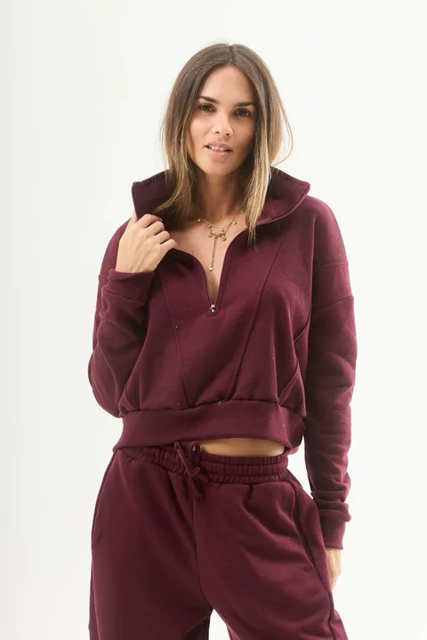 Buzo confeccionado en rústico con cierre en el cuello, y recortes laterales en morley. Modelo ideal para lookear con el Pantalón Stuttgart.