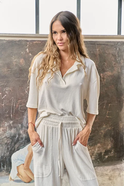 Chomba confeccionada en lanilla cashmir combinada cuello con lanilla morley. Ideal para combinar con el Pantalon Cashmir